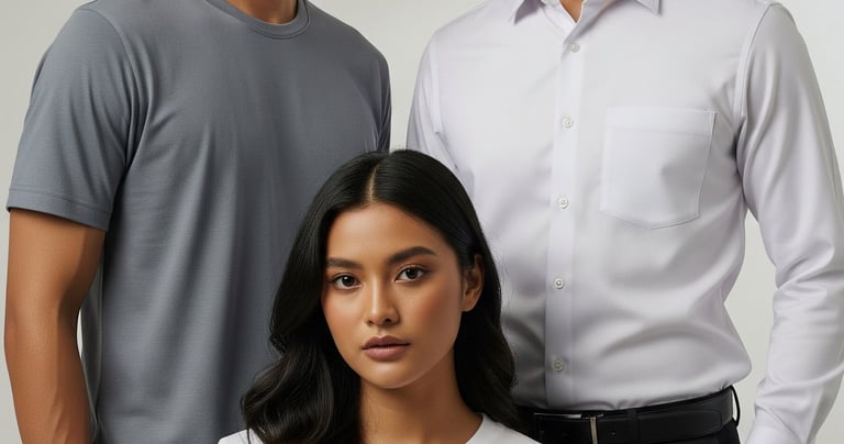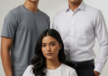 Menyediakan kaos polos, sablon, serta kemeja kerja dan seragam formal dengan bahan berkualitas dan hasil jahitan rapi untuk kebutuhan promosi maupun identitas perusahaan.